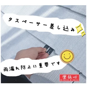 こうしたことを防ぐためにタスペーサーを屋根材の重なり部分に差し込み、板と板の間に隙間を作ります。