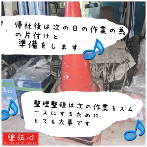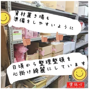 月一回の社内清掃と、日頃からこまめに整理整頓をして、常に気持ちよく仕事ができるように、環境整備を社員みんなで