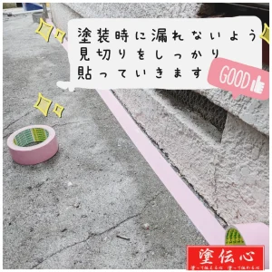 見切りがコンクリート部分にテープを貼っていくことになるので