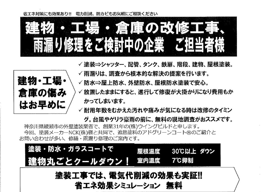 弊社では、遮熱塗料を使った省エネ・節電対策や、