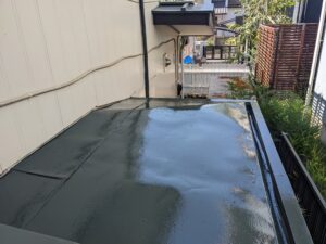 次に下屋根は、防水性と耐久性を重視して丁寧に塗装しました。光沢感のある仕上がりで、雨水をしっかり弾き、長く安心してお使いいただけます。