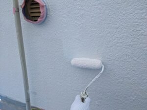下塗りは、仕上げの塗料をしっかり密着させるための大切な作業で、家を長持ちさせる土台作りになります。写真のようにローラーで丁寧に塗布し、ムラなく下地を整えることで、この後の中塗り・上塗りがきれいに仕上がります。見えない部分だからこそ手を抜かず、確実に施工することが重要です。