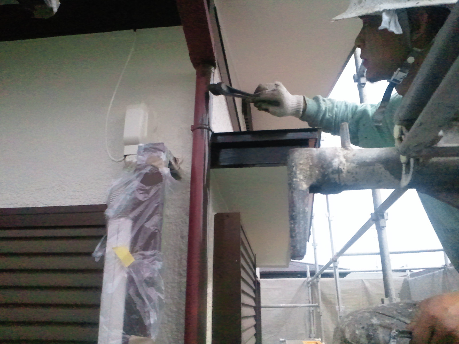 綾瀬市 O様邸 今日は木部 鉄部 雨樋 の塗装を行いました。 現状は 思わず手が止まってしまう程に 旧塗まくがバリバリに剥がれていました。 奥様は 塗装してからある程度年数が経過すれば仕方がないと あきらめているようですが、そんなことはありません。おそらく 前回の塗装で 木部や鉄部に、錆止めを塗布せずに 水性の塗料を使ったのでしょう。 急いで全てをケレンで削ぎ落とし プライマーを塗布してから仕上げを行いました。 O様、ご安心ください。 しっかりとした手順で行えば そんなに簡単には 剥がれ落ちるものではありませんよ。