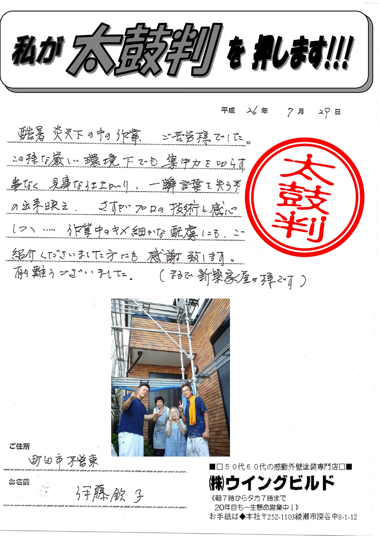 町田市 伊藤様より外壁塗装工事・屋根塗装工事のコメントを頂きました。