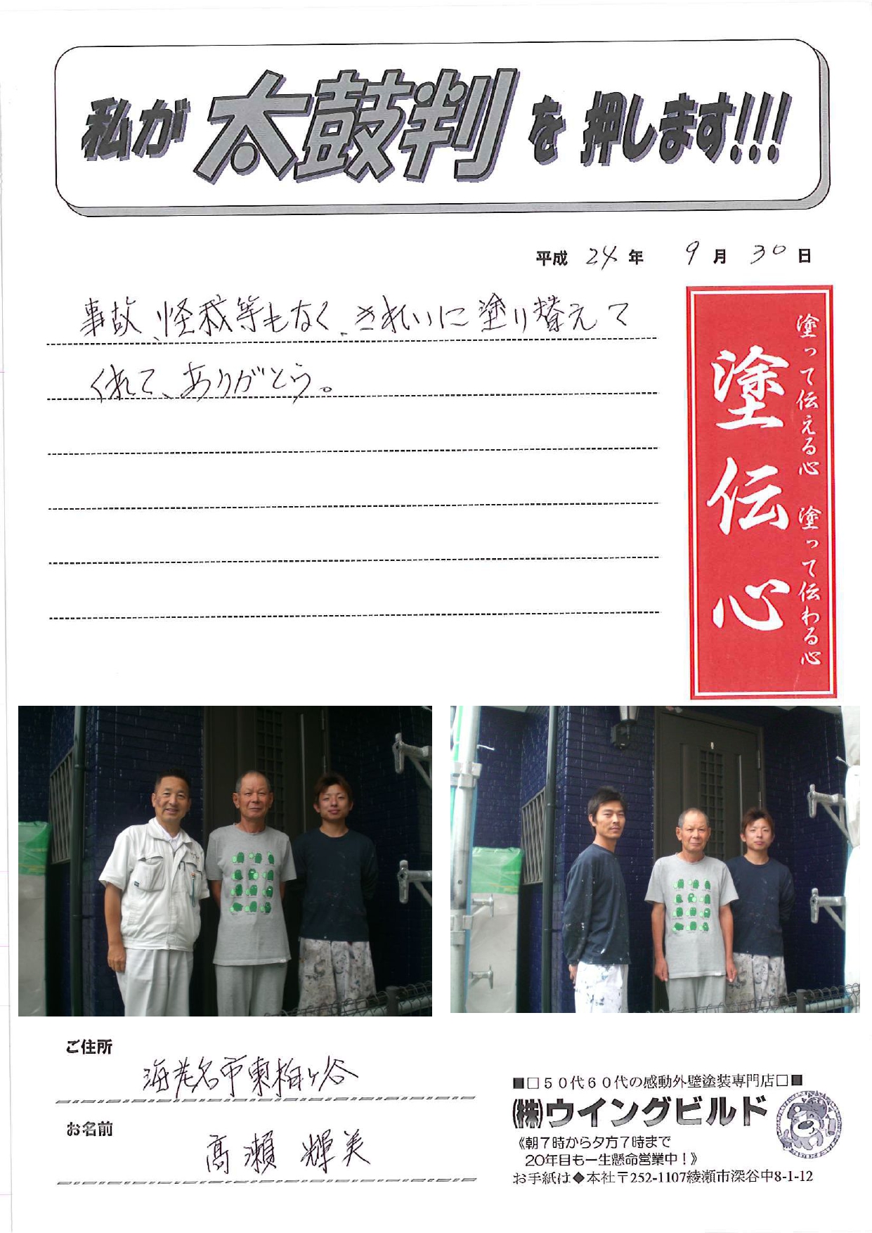 事故、怪我等もなく、きれいに塗り替えてくれて