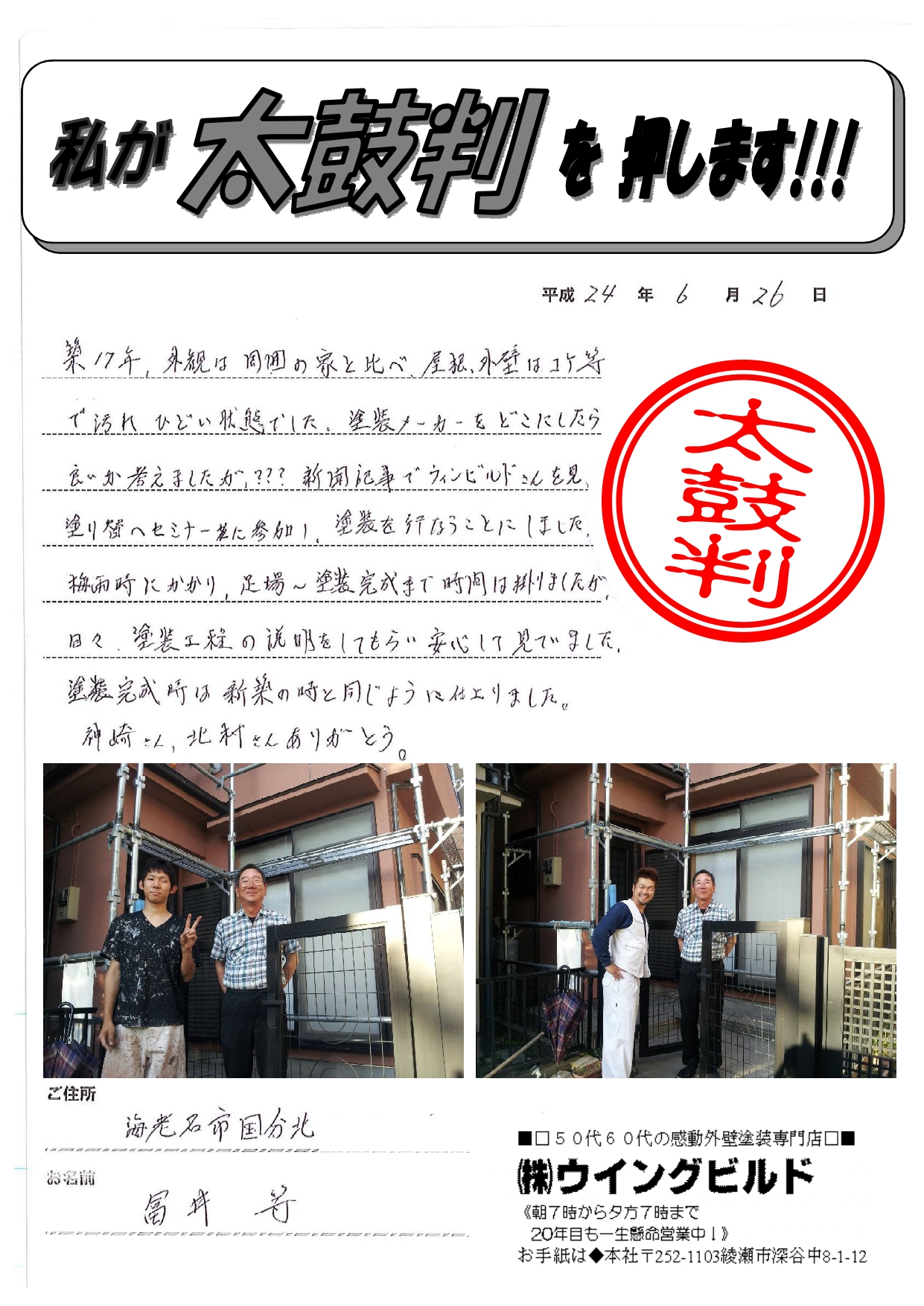塗装メーカーをどこにしたら良いか考えましたか???新聞記事でウイングビルドさんを見て、塗り替へセミナーに参加し、塗装を行うことにしました。