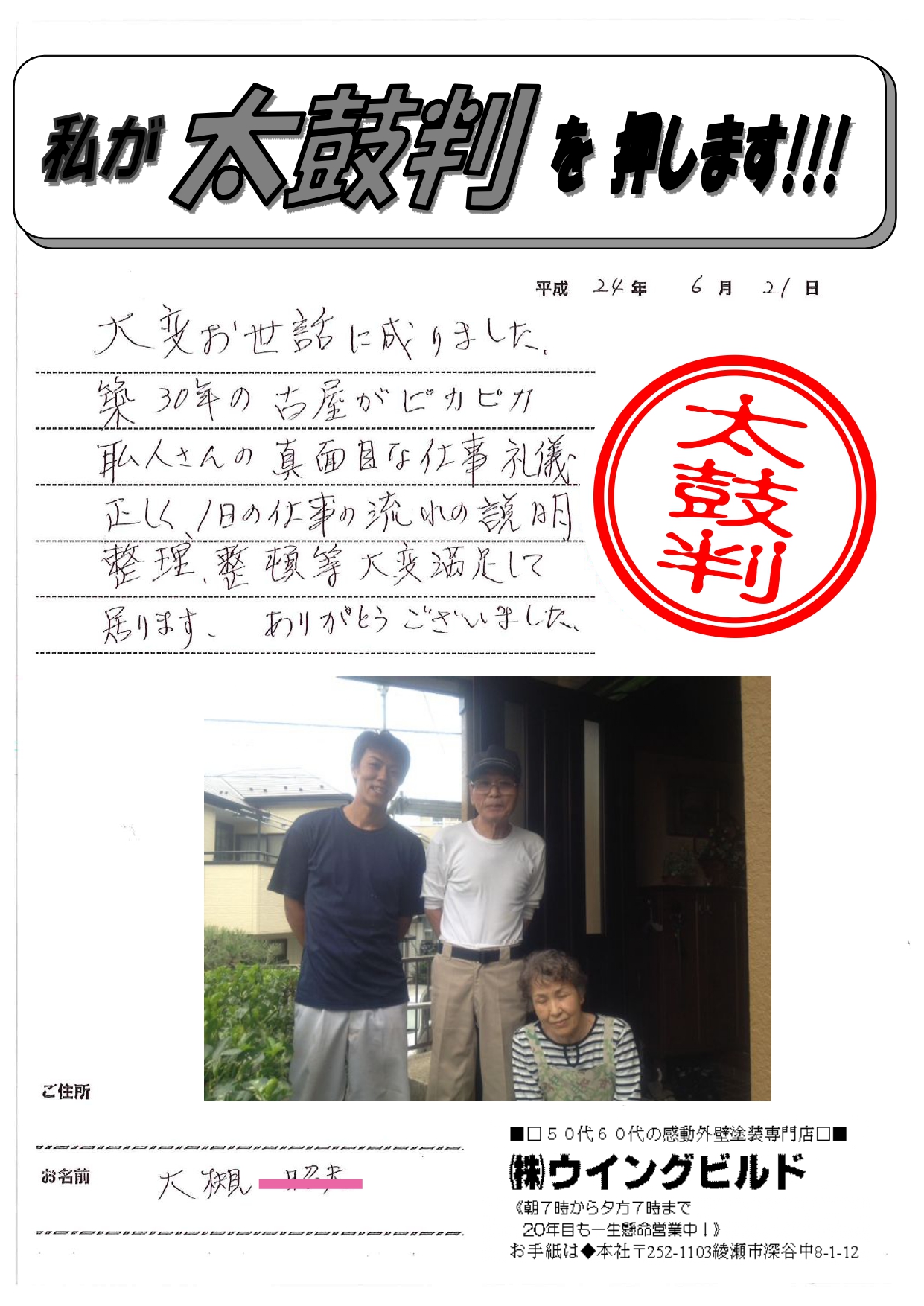大変お世話になりました 築30年の我が家がピカピカ 職人さんの真面目な仕事礼儀正しく 一日の仕事の流れの説明整理整頓等 大変満足しております。 ありがとうございました