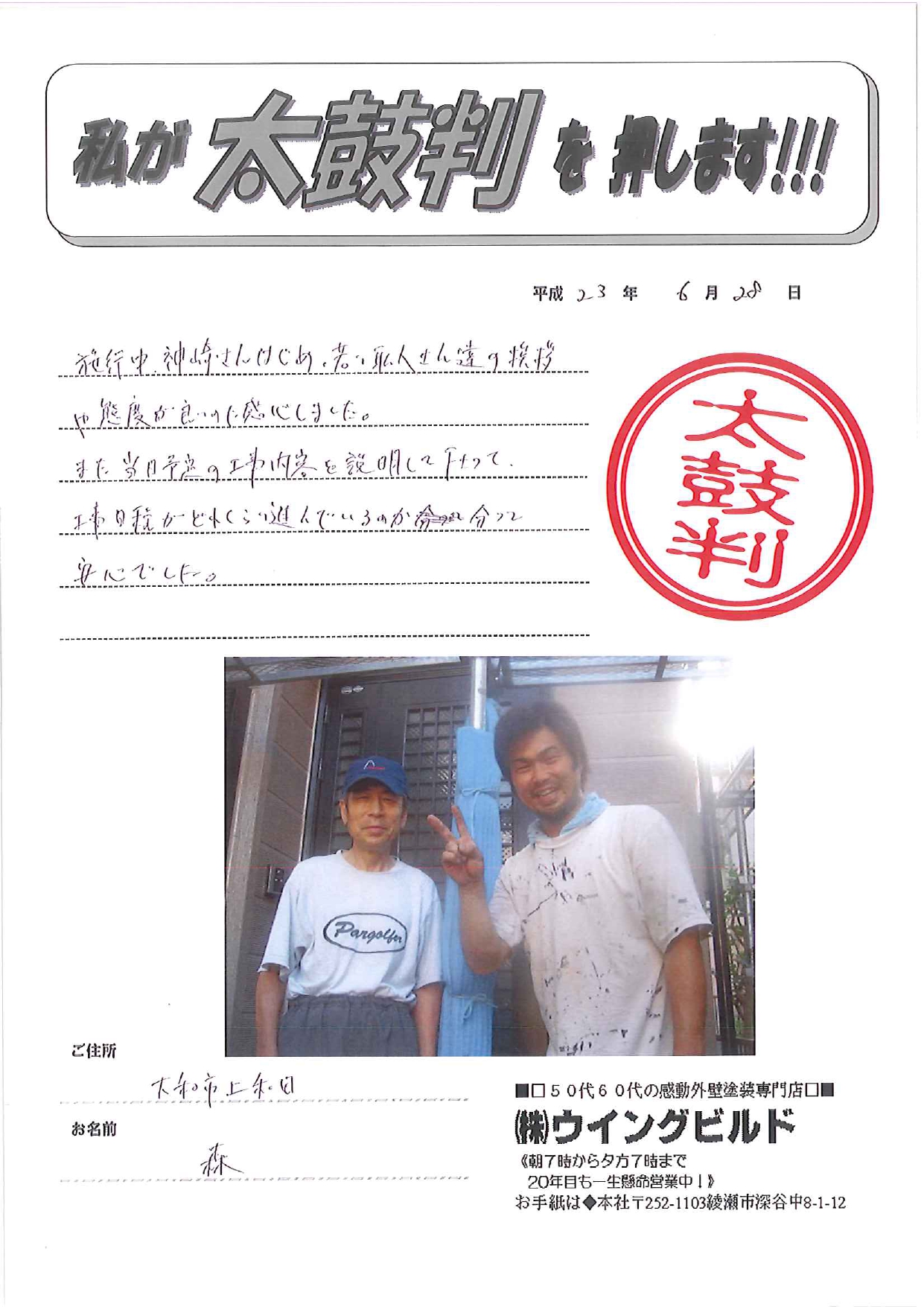 施工中、神崎さんはじめ、若い職人さんたちの挨拶や態度が良いのに感心しました。