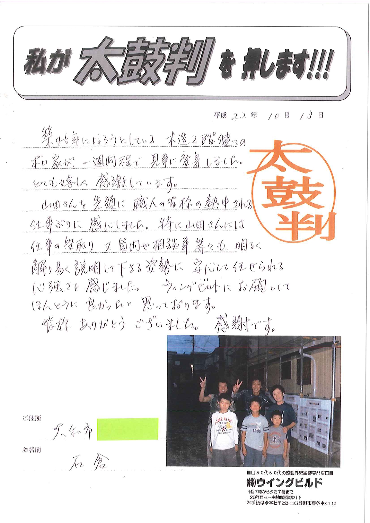 ウイングビルドにお願いして、本当に良かったと思っております。