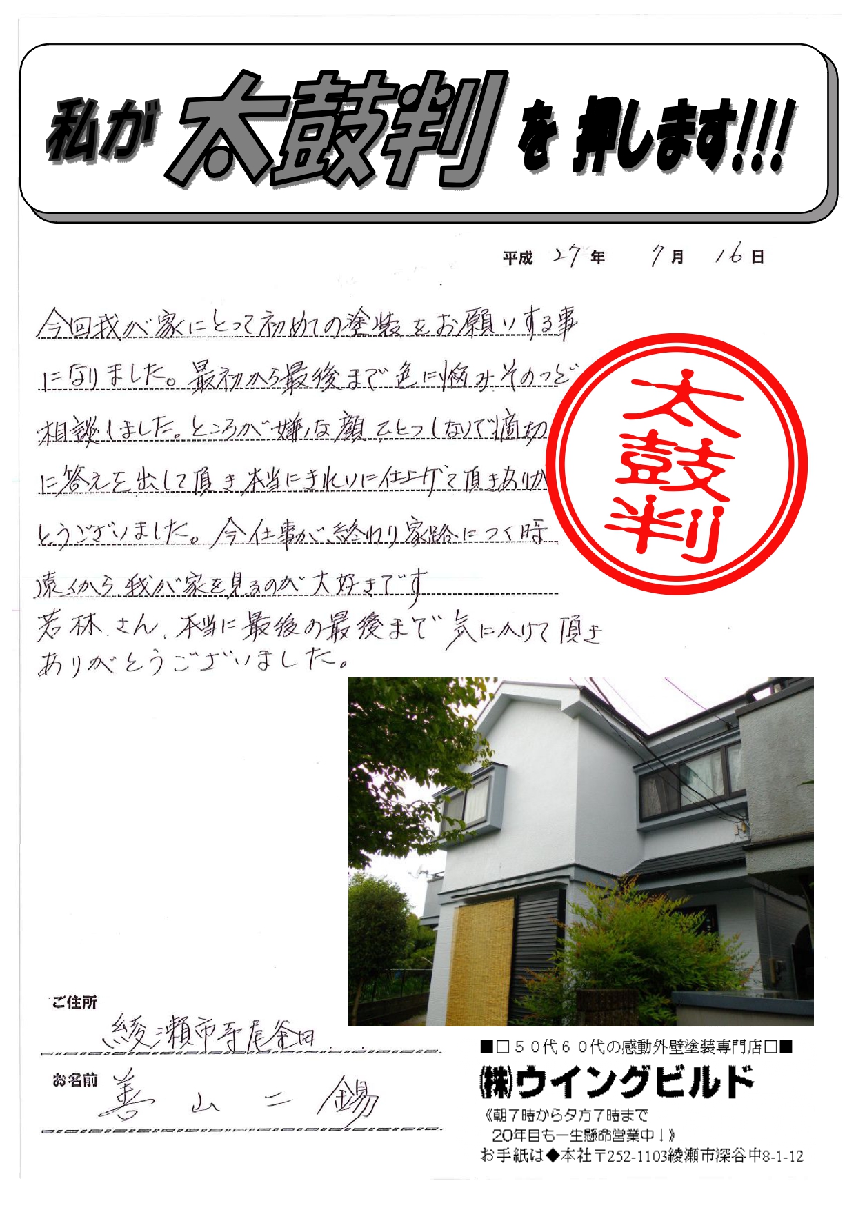 綾瀬市 善山様より外壁塗装・屋根塗装工事のコメントを頂きました。