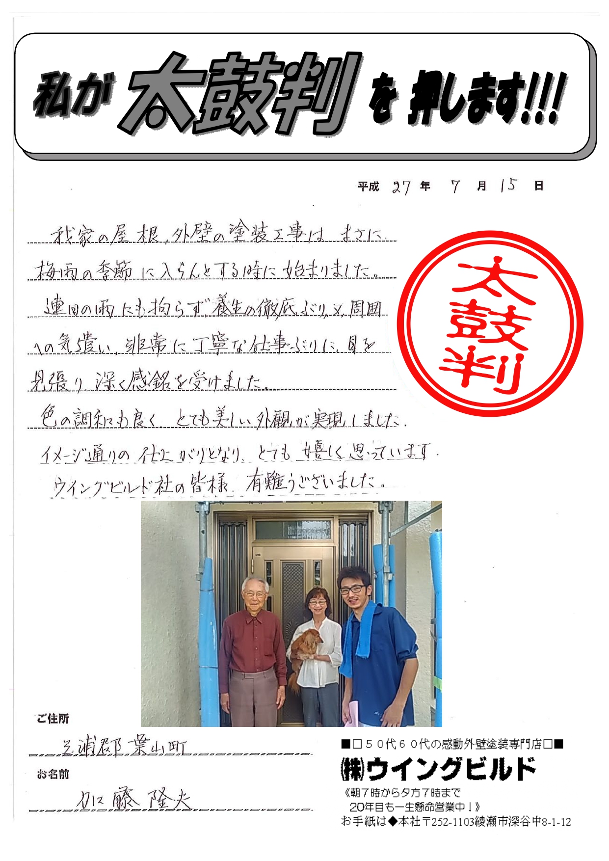 ウイングビルド社の皆様 有難うございました。