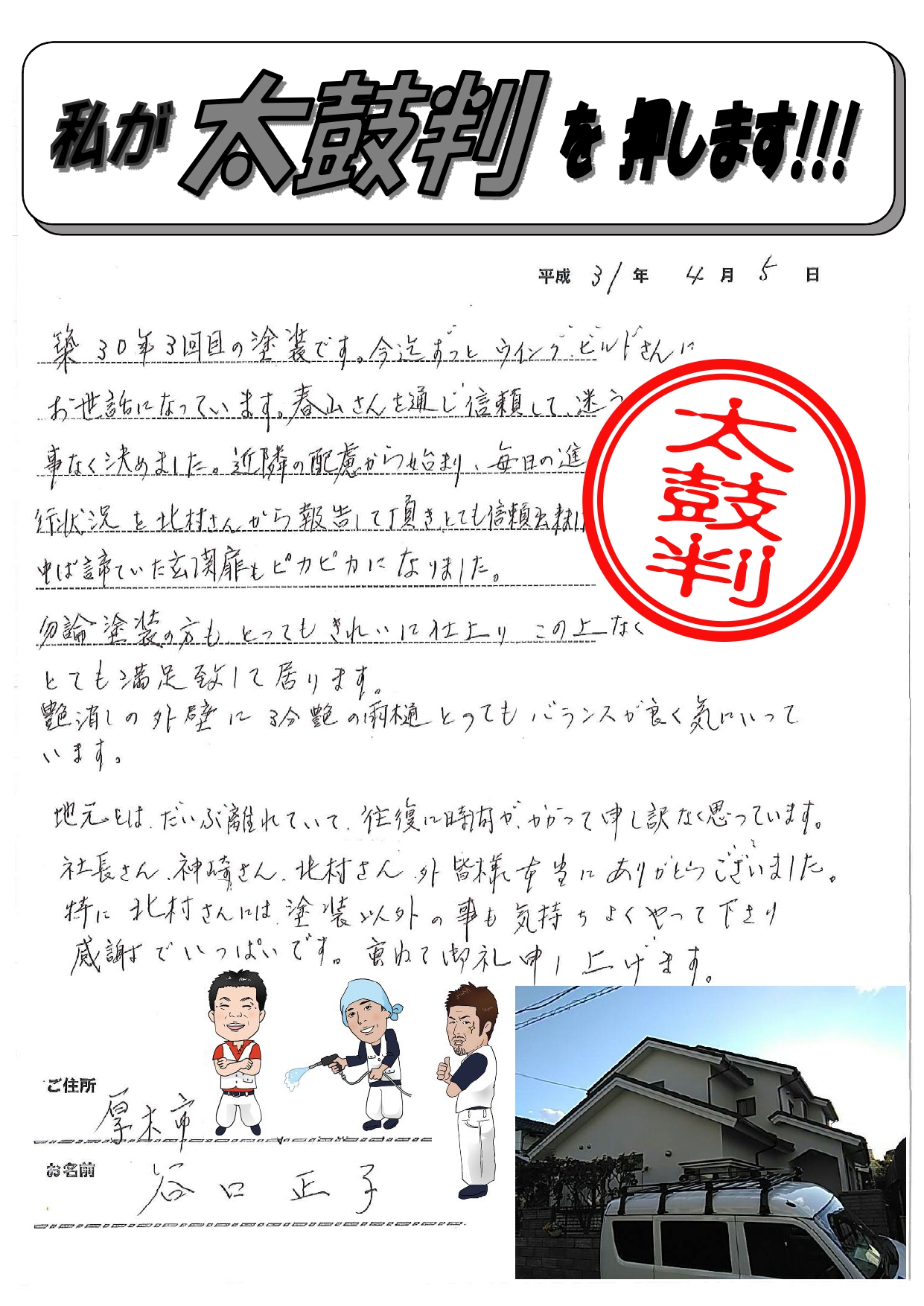 厚木市 谷口様より外壁塗装工事の太鼓判をいただきました!